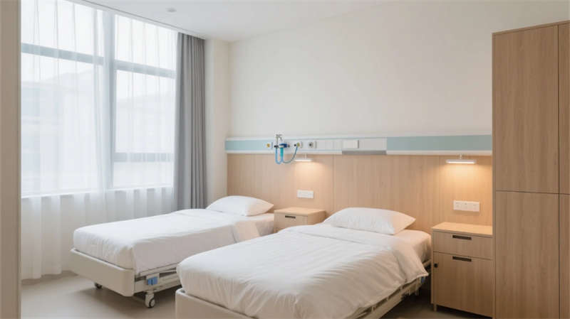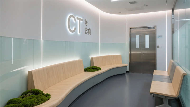 門診大廳借全景落地窗模糊室內(nèi)外界限,庭院綠意成為天然療愈元素;病房區(qū)采用柔光系統(tǒng)與木質(zhì)肌理,弱化傳統(tǒng)醫(yī)療空間的冰冷感。影像科與手術(shù)室通道以科技藍(lán)光點(diǎn)睛,在嚴(yán)謹(jǐn)中注入未來感??祻?fù)大廳與屋頂花園形成垂直療愈體系,自然光影透過格柵灑落,促進(jìn)身心同步康復(fù)。
