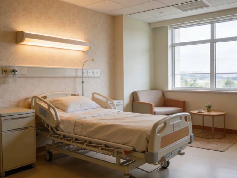 病房區(qū)摒棄冷硬色調(diào),墻面覆以柔和肌理的壁紙,病床旁設(shè)置可調(diào)節(jié)的柔光系統(tǒng),獨(dú)立觀景窗引入外部綠意,每間病房配備小型休憩角,讓陪護(hù)者也能獲得舒適體驗(yàn)。