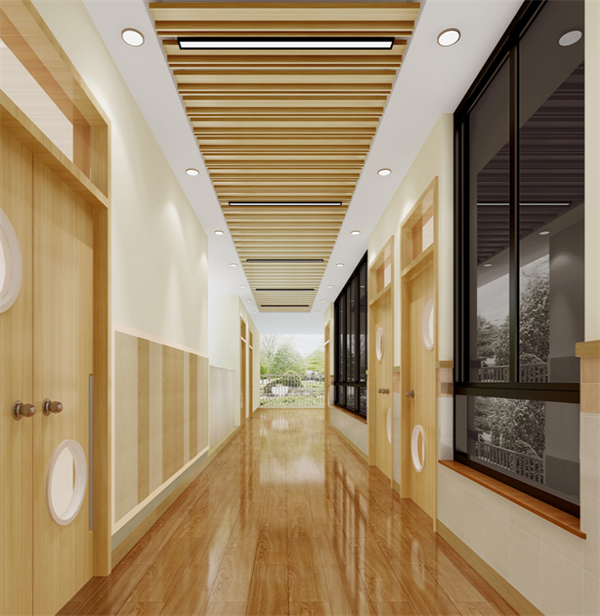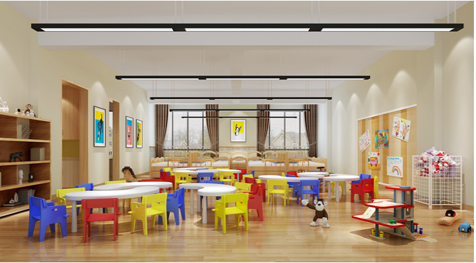 由于線條簡單、裝飾元素少,現(xiàn)代簡約需要軟裝來配合。如沙發(fā)與玩具等。軟裝到位是現(xiàn)代粉飾的關(guān)鍵。多功能的個(gè)性空間功能與空間組織,主要以木色為主,沒有太重,太跳的的顏色。以簡潔的造型和別出心裁的擺放,打造溫馨,優(yōu)質(zhì)的幼兒園環(huán)境。