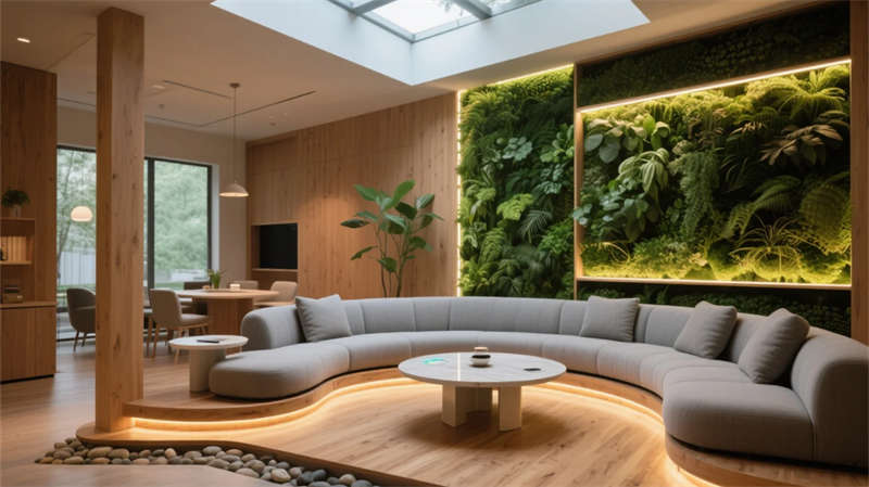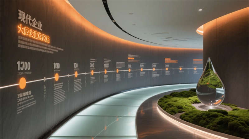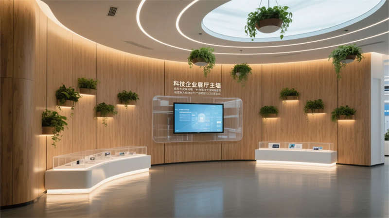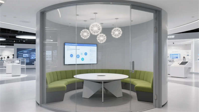 入口以光帶引導(dǎo)與生態(tài)綠墻開啟敘事,核心展區(qū)通過懸浮觸控與嵌入式展臺聚焦技術(shù)創(chuàng)新。數(shù)字沙盤區(qū)突破物理限制,以天地屏聯(lián)動呈現(xiàn)發(fā)展藍圖;智能會議艙可隨時轉(zhuǎn)化為協(xié)作中樞,通透隔斷維持空間對話性。文化長廊以光影步道承載企業(yè)精神,生態(tài)休憩區(qū)則借自然光影與苔蘚景觀構(gòu)建減壓綠洲。