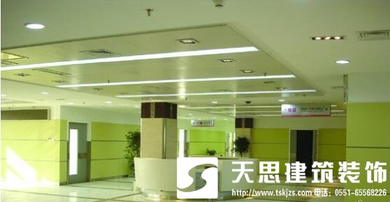 病房——橡膠地板。衛(wèi)生間、開水間、消防梯及通道——地磚。門診樓、行政辦公、科教室——防滑地磚??蒲小z驗——防靜電地板、防腐蝕地磚。天花,除門診大廳、電梯廳、過廳等公共空間外,可采用半隱式輕鋼龍骨防水石膏板吊頂。墻面——殺菌彩色乳膠漆。